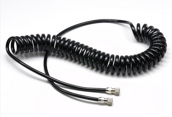 The coil shape reduces floor clutter and improves maneuverability around a hobby bench, helping prevent tangles during long paint runs. It pairs with a variety of high power compressor models, making it a flexible choice for different airbrushing setups.