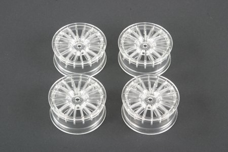 Tamiya 49411 wheels are built to stay light while offering reliable service during track sessions or club meets. The transparent finish provides a clean, modern look and the sizing works with a broad selection of 1/10 touring car chassis.