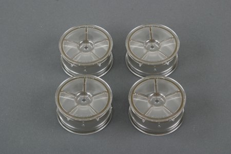 These Tamiya 49407 M-Narrow dish wheels are aimed at hobbyists wanting a tidy, track-ready appearance for 1/10 on-road vehicles. Manufactured in sturdy plastic and finished in smoke, they measure 52mm in diameter and 24mm across the face.